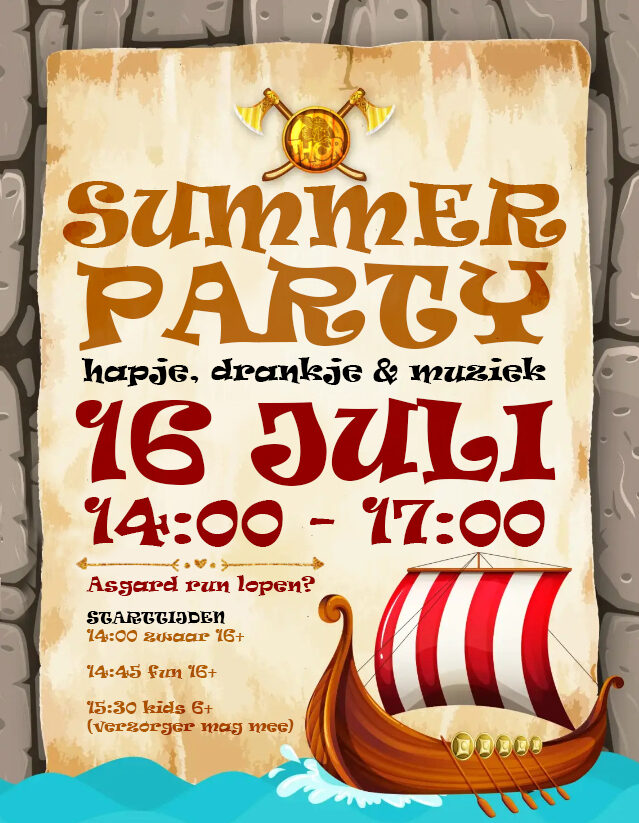 Op de Summer Party heb je de gelegenheid om de Asgard run te lopen (een uitdagend parcours op de baan). Heb je nog nooit een run gelopen, maar ben je wel nieuwsgierig doe dan zeker mee met de fun run?