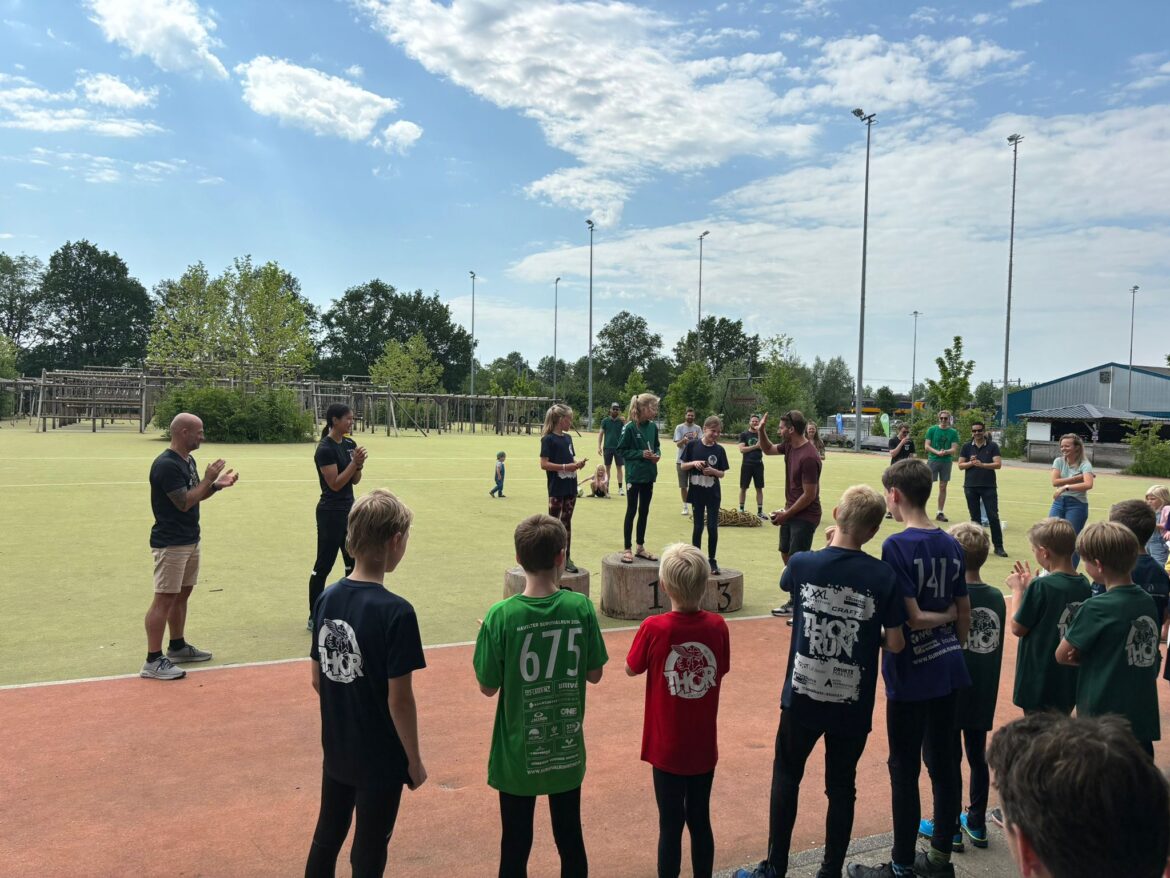 Afgelopen zaterdag heeft de tweede editie van de THOR jeugd clubkampioenschappen plaatsgevonden. Ook bij deze tweede editie hadden we het beste weer dat we ons konden wensen. Bij de clubkampioenschappen wordt er in verschillende leeftijdscategorieën gestreden. Deze editie stonden er bijna 30 jonge atleten aan de start. Het parcours was kort maar uitdagend en bestond uit 6 rondes. Elke ronde werd gestart met een kracht of coördinatie oefening. Denk hierbij aan kruipen door banden en boogschieten. Na de oefening ging je meteen door naar de hindernissen. Er werden in één ronde meerdere hindernissen achter elkaar geklommen. Na het klimmen doken de atleten het schelpenpad op voor een klein stukje hardlopen. De laatste ronde was mede dankzij het heerlijke weer het leukste omdat de deelnemers door het water heen moesten om de waterhindernis te trotseren! Mede door deze combinatie hebben de kinderen kunnen genieten van een leuke run op eigen baan. Deze tweede editie was extra speciaal omdat trainster Alianne deze mocht organiseren voor een opdracht van school. Alianne had het niet beter kunnen organiseren want ze is dik geslaagd voor deze opdracht!