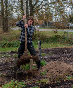 Ik ben heel veel buiten te vinden. Met mijn collega’s Nadine (ook een Thoriaan) en Otto runnen we Voedselbos Zwolle.Dat is een Coöperatie in Spoolde. Het is een combinatie van een zelfoogst tuin en een voedselbos. Dit is geregeld flink hard werken in weer en wind. Ik vind het heel leuk dat ook veel Thorianen bij ons op het Voedselbos oogsten!
